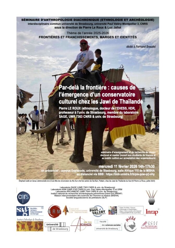 « Par-delà la frontière : causes de l’émergence d’un conservatoire culturel chez les Jawi de Thaïlande », conférence de Pierre Le Roux (ethnologue, professeur, HDR, à l’univ. de Strasbourg, laboratoire SAGE, UMR 7363 CNRS & univ. de Strasbourg)