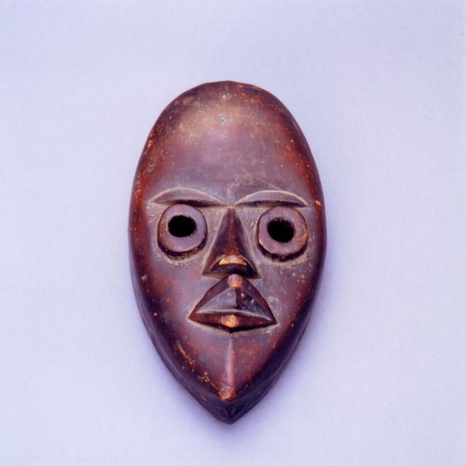 Ce masque est l’archétype de ce qu’on appelle un « faux ». Sa patine lisse, impeccable, ses petites dimensions, témoignent du fait qu’il nait jamais reçu de libations, et n’a jamais été porté.
