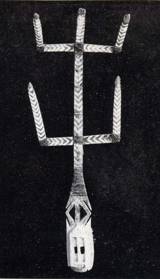 - Poulie de métier à tisser, surmontée d’une figure d’ancêtre : 2002.0.229