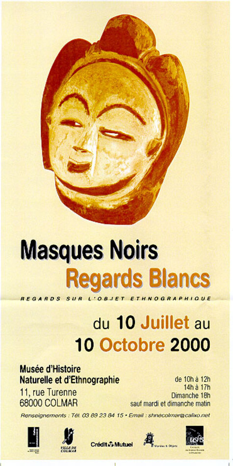 Le musée d’histoire naturelle et d’ethnographie de Colmar accueille l’exposition Masques noirs, regards blancs, créée en 1999 par l’Institut d’ethnologie de l’Université de Strasbourg et complétée, pour l’occasion, par des œuvres du musée et par les collections privées de Pierre Andlauer et de Florent Wollenburger.