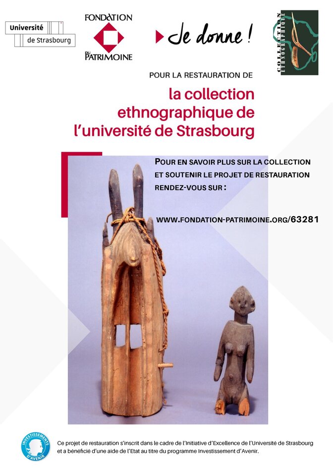 L'université de Strasbourg et la Fondation du patrimoine ont lancé en mars 2020 une collecte de dons pour la sauvegarde de la collection ethnographique de l’université de Strasbourg. Aujourd’hui cette collection est menacée en raison de l’altération de 38 pièces. Afin de mener à bien leur restauration, l’objectif de collecte est de 4 000 €. Nouvellement restaurées ces 38 pièces pourront être présentées dans le cadre de manifestations temporaires.